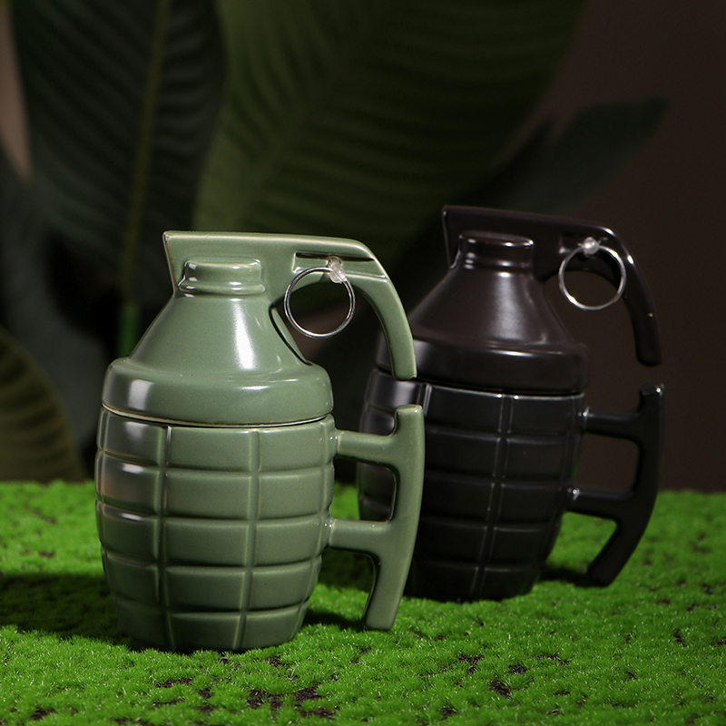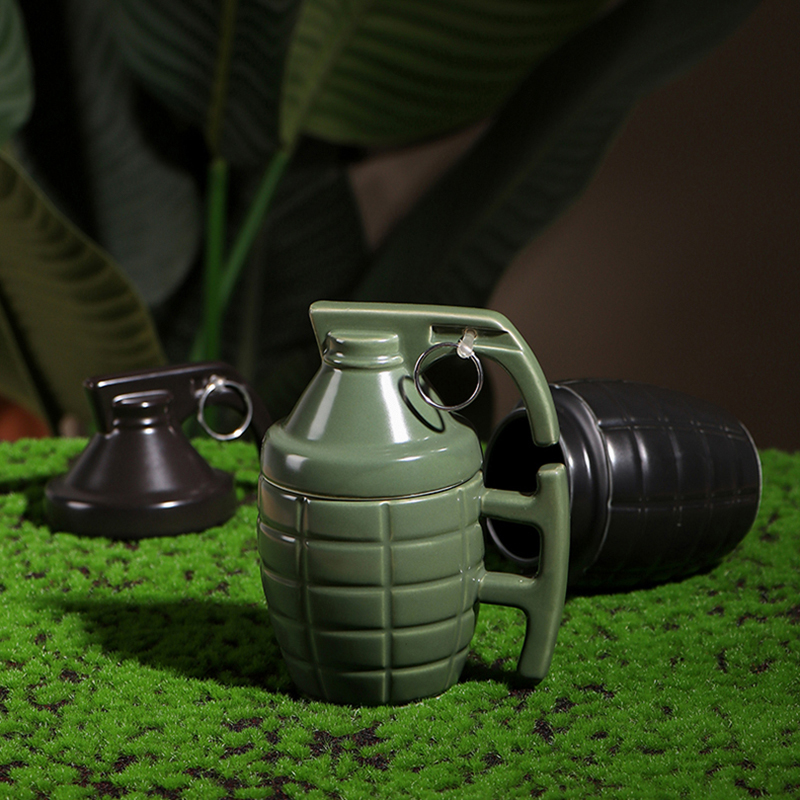 Make a statement with the FormFeast HH-8603, a 350ml ceramic mug designed to mimic the iconic shape of a grenade, finished in a smooth, glossy glaze that catches the light. Choose between the understated elegance of matte black or the rugged appeal of military green to match your personal style or decor.